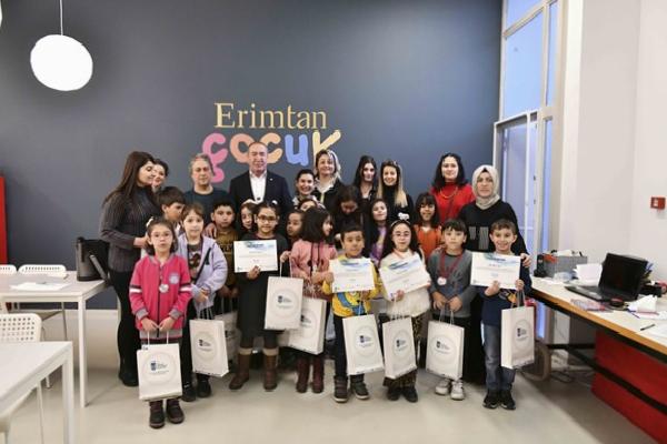 Atölye çalışmasının da yer aldığı program kapsamında çocuklar Erimtan Müzesi’nde hayal güçlerini kendilerine verilen malzemelerle bileştirerek hatıra sikke bastı.