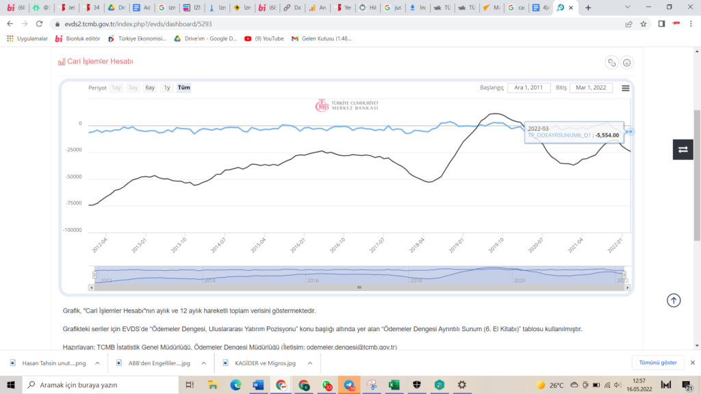 Türkiye’de Mart ayında cari işlemler dengesi, enerji fiyatlarındaki küresel rallinin dış ticaret dengesizliğini daha da kötüleştirmesi nedeniyle üst üste beşinci ayda da açık verdi. Aylık bazda 5,55 milyar dolar olarak açıklanan cari açık rakamı 5,7 milyar dolar açık olan piyasa beklentisine paralel gerçekleşmiştir. Cari işlemler açığı, aylık dönemde ise geçen yılın Mart ayındaki 3,33 milyar […]